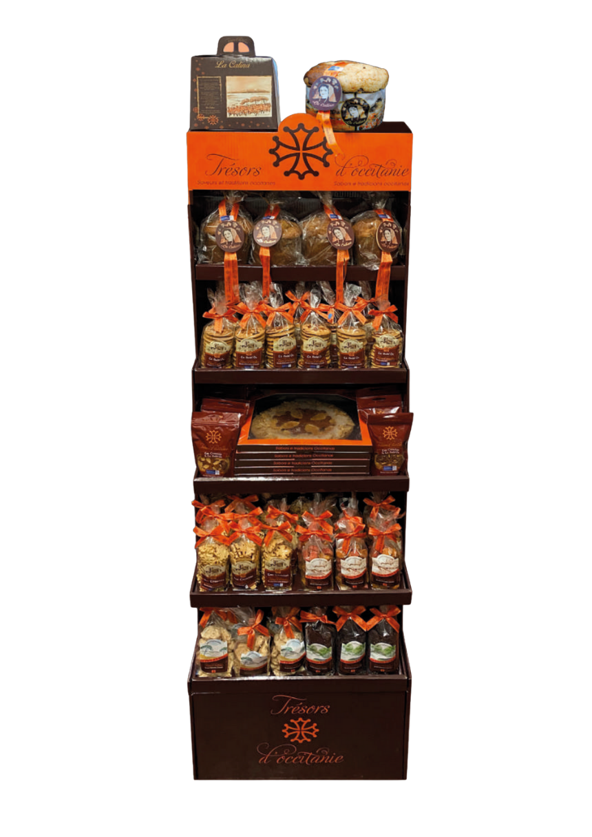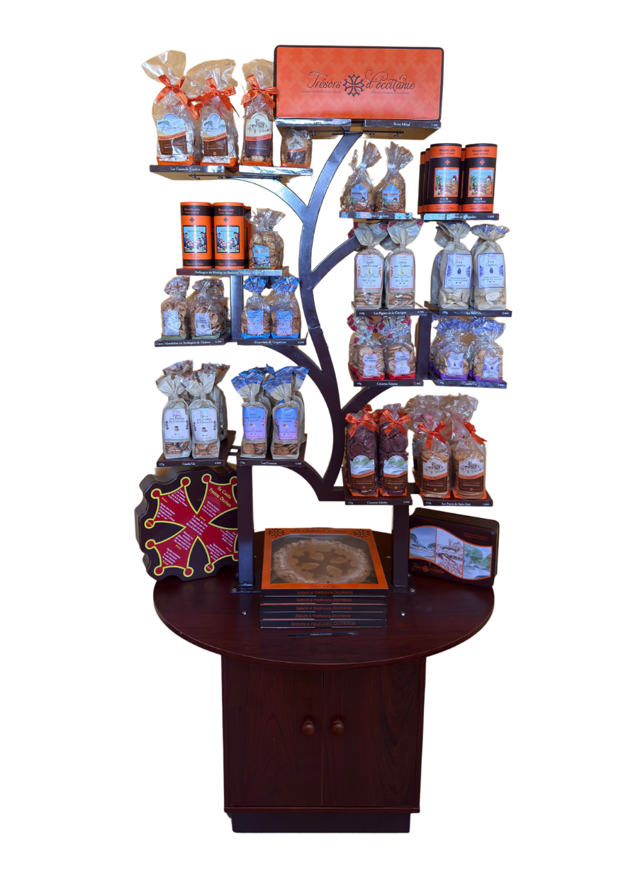 Afin de mettre en valeur nos produits, nous proposons des présentoirs, en bois et métal ou en carton.